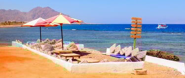 Sijaintimme on ihanteellinen rantalomalle, sillä olemme kätevästi vain 45 minuutin päässä Taban rajalta tai 1,5 tunnin päässä Sharm El Sheikhin lentokentältä. Tämä tarkoittaa, että saavut sitten naapurimaista tai lennät, määränpäähämme pääseminen on vaivatonta ja aikatehokasta.